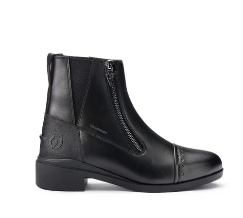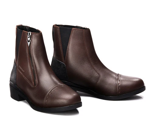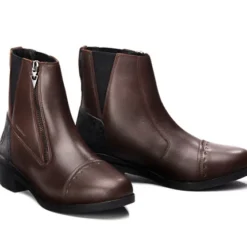 Kerrits Cascadia Waterproof Paddock Boots are ladies horse riding boots with unique technology for performance and rider comfort. The Cascadia boots have a classic look in black leather or rich Mahogany brown with stylish Kerrits logo punched toe cap. Kerrits Cascadia Paddock Boots are full grain leather with RideDry technology that includes sealed seams for nice dry feet.