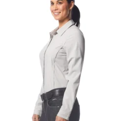 Kerrits Equitate Button Up Shirt gives equestrians a polished, pretty option for technical riding shirts. With its wrinkle resistant, breathable fabric and flattering lines, the Equitate Shirt will be comfortable and sharp looking for clinics, show schooling, teaching lessons, and daily riding.