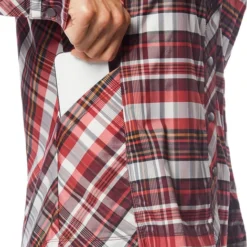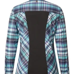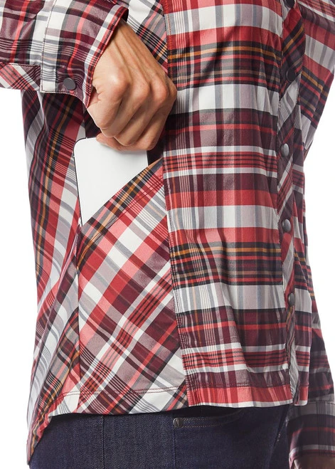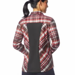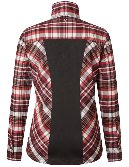 Women’s Triple Chill Sun Shirt has thoughtful features like a mesh back panel for extra ventilation and handy deep pocket at the right hip. The fabric is a silky, cool plaid that looks crisp and hides dirt. Flattering feminine seams add to its appeal. You’ll find the Kerrits Triple Chill Sun Shirt useful for the barn, camping, hiking, dog walking, and everyday summer fashion. Get sun protection with a more traditional shirt style with the Triple Chill Sun Shirt in Sangria Plaid or Topaz Plaid from Kerrits Equestrian!