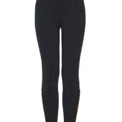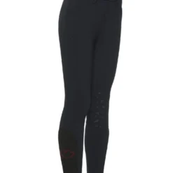 Boys and Girls hunter jumper breeches from Cavalleria Toscana offer a four-way stretch technical jersey fabric that is breathable and super comfortable. The exclusive Horse and Helmet silicone print knees provide flexible grip in the saddle. Front zip Euro seat breeches have front pockets and wide belt loops. Stretch knit panels at the lower leg accommodate different calf sizes and allow a sleek fit under tall boots and half chaps. Horse & Helmet Kids Breeches from Cavalleria Toscana are quality children’s equestrian clothes that work well for jumping, eventing, clinics, and lessons.