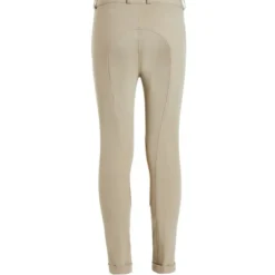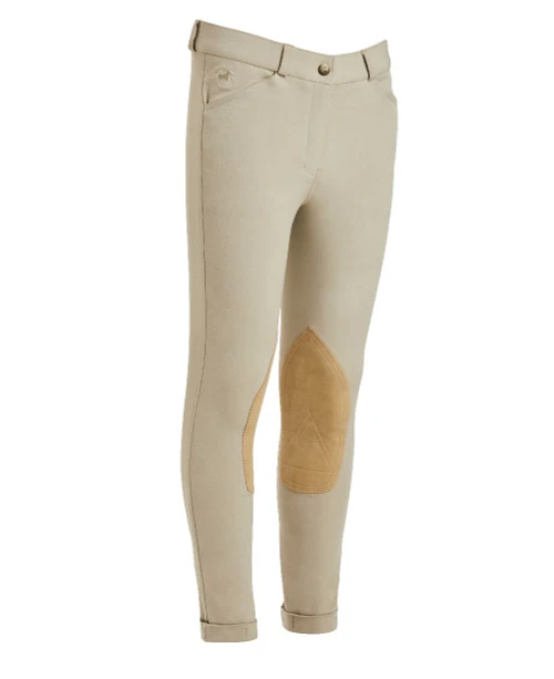 The Piper Jodhpur for Kids has traditional style in tan color with a cuffed ankle that is neat and low profile. The stretch blend fabric is breathable, wicking, and durable. Faux suede knee patches complete the classic look for short stirrup riders. Piper Kids Jodhpur at Mary’s is an affordably priced riding pant with modern comfort and fit plus traditional show ring style.