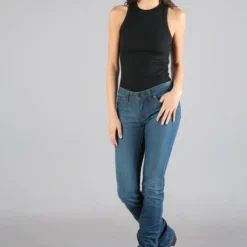 Betty 17 Western jeans for women feature a modified bootcut, fitted thigh, and flattering mid rise. The denim is hand sanded and rinse washed. The back pockets feature the instantly recognizable Kimes steer horns embroidery. Kimes Ranch jeans for men and women are a favorite of riders and those who live the country life. Kimes Ranch selects the best denim, designs their jeans for the active rider, and gives their apparel a classic, authentic look and feel. Betty 17 is comfortable, durable, holds its shape, and has a slimming profile. All that plus it’s made in the USA!