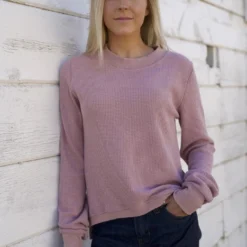 Kimes Ranch Ladies Portales Thermal Crew is not your typical thermal shirt! Super cute and updated long sleeve shirt has a slight cropped length and wide crew neck. The relaxed fit and slouchy sleeves of the Portales Thermal Crew add up to total comfort.