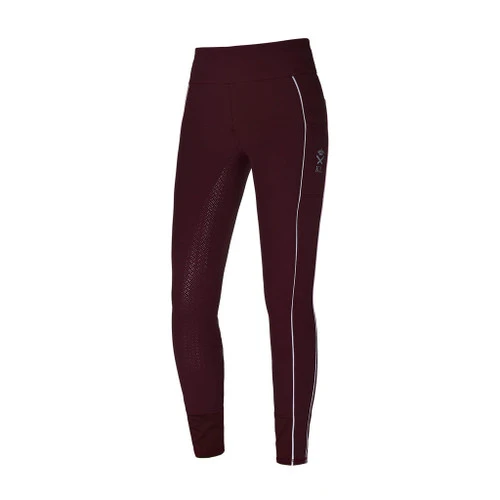 Kingsland Katja E-Tec Full Grip Pull On Breeches are the perfect dressage schooling breech with a flexible silicone print seat, wide flat waistband, and stylish trim. The KL Katja Full Seat Pull On Breech is as easy to wear as riding tights but has more structure with a gentle compression fit. Women’s dressage breech for schooling, lessons, and casual barn days is available in Navy (almost black) and Red (closer to a merlot color) with clear silicone print seat.