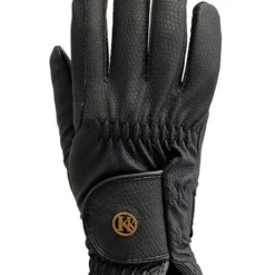 Kunkle Premium Show Gloves are a lightweight synthetic material with pebbled texture for excellent grip on the reins. The gloves are thin with a second-skin feel that’s perfect for riding with 2 sets of reins and a crop. They are elasticated across the top and at the wrist. A wide hook-and-loop tab with elegant logo ensures a secure fit. The Premium Show Gloves are thin yet they last a surprisingly long time. Kunkle gloves are touch screen compatible and that capability does not decrease over time. You can machine wash and air dry your Kunkle Equestrian Premium Show Gloves to keep them clean and fresh for training and showing.