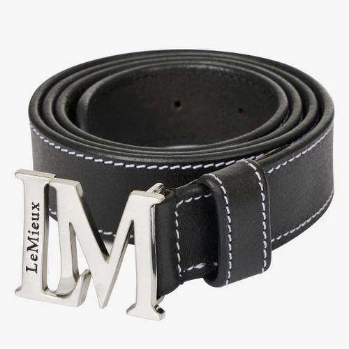 The LeMieux Monogram Belt in Black or Brown has a brushed metal monogram pin buckle. Neat contrast stitching and finished edges complete the upscale look. This belt is perfect for high waist leggings and breeches. Size up if you plan to wear the Monogram Belt with low rise breeches.