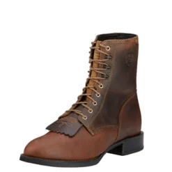 ATS technology stabilized the foot and cushions the heel. The Ariat Heritage Lacer Boot features a removable kiltie that adds extra protection on top of the boot and gives you stylish options. The Duratread outsole is flexible and tough for comfortable, long lasting wear.