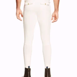 Men’s knee patch riding breeches feature Ariat’s revolutionary V3 Fit System for a no-gap fit in the waist. Men’s hunter/jumper horse show breeches are durable enough for schooling, too. Available in Tan or White for all your show ring needs and to coordinate with riding shirts, vests, and jackets.