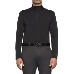 Handsome and practical Cavalleria Toscana Tech Wool Zip Turtleneck for men is a mix of smooth poly/nylon and stretchy, breathable wool knit for ultimate athletic performance. Men who ride in colder temperatures will appreciate the Tech Wool Turtleneck as a base layer that can be paired with vests and jackets. It’s wicking, quick drying, and inhibits odor formation.
