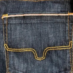 Roger Bootcut Jeans for Men have signature Kimes Ranch details like the handy knife pocket, distinctive stitching, and superb fit. The Roger Jean has classic five pocket styling in dark indigo with copper stitching. The back pockets have the Kimes Ranch horns logo and subtle red stitching across the top. The modern slim fit with a stackable straight leg and slight bootcut plus low rise make these Kimes jeans a winner. Whether in the saddle, working on the ranch, or catching up on errands around town, the Men’s Kimes Ranch Roger Jeans are ready to get ‘er done.