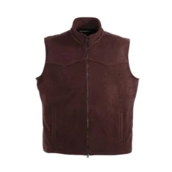 Oregon Vest for men from Outback Trading Company is mid weight fleece outerwear with soft brushed fleece lining for excellent warmth in windy, chilly weather. The Oregon Vest has a 2-way zipper that makes it easy to get comfortable in the saddle. Rich chocolate brown with Southwestern print lining or Charcoal with red plaid lining has a classic Western look for outdoorsy guys.