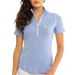 Women’s Ovation Cool Rider Shirt with Short Sleeves is ready for summer riding with UPF50+ lightweight, breathable tech fabric. The short sleeved technical riding shirt is versatile and practical for lessons, clinics, and everyday riding. The Evercool fabric technology helps cool you down on hot days when riders start to perspire. The Short Sleeve Cool Rider Shirt has a quarter zip mock neck with stylish coordinating print inside.