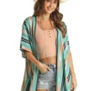 Panhandle Rough Stock Aqua Brown Stripe Shirt has simple Western styling with a bold stripe print that looks fresh and crisp. Women’s long sleeve Western shirt from the Panhandle Rough Stock collection has a button front and single pocket with Panhandle embroidered logo.