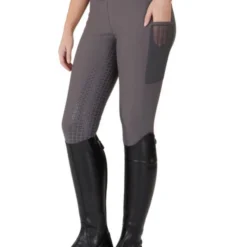 Piper Fusion Full Grip Breeches available at Mary’s were designed for those who want the comfort of a pull-on tight but like the look of a performance breech. The mid-rise Piper Fusion Breech in Full Seat blends the best of both worlds. The technical stretch performance fabric allows you full range of motion for ultimate comfort and mesh sock bottoms maximize breathability. Convenient dual mesh pockets let you securely store your phone. The Piper Fusion has the aesthetic of breeches with two faux buttons, faux fly front, and wide waistband that lets you accessorize with your favorite belts.