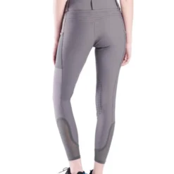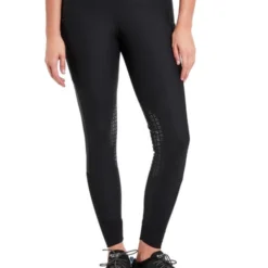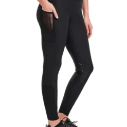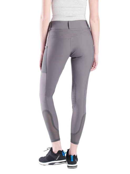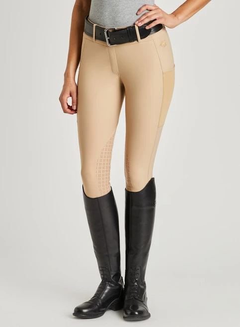 Piper Fusion Knee Grip Breeches are perfect for women who want the comfort of a tight but like the look of a performance breech. The Piper Fusion Breech with silicone print knee patch offers the best of both worlds. Comfortable technical stretch performance fabric allows full range of motion and mesh sock bottoms maximize breathability. There are two mesh pockets to let you securely store your phone. Piper Fusion Breeches have the look of breeches with two faux buttons, faux fly front, and belt loops.