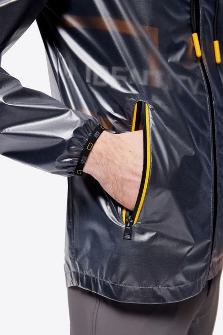 With its sleek look and semi-transparency, the RG Waterproof Hooded Jacket is perfect for men and women who enjoy contemporary style. The casual riding jacket has a slightly longer back hem, a drawstring hood, and sealed zipper with a branded pull that’s easy to grip. A splash of orange logo highlights and trim at the pockets plus black rectangle logos in back keep the urban look going strong. Rider’s Gene RG Waterproof Hooded Jacket in grey is available in a range of sizes to fit men and women. RG clothing comes to us from Cavalleria Toscana.