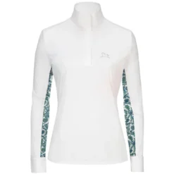Women’s RJ Classics Carly 37.5 Show Shirt offers a traditional look for showing with white wrap collar and cuffs. The covered quarter zipper placket ensures a clean, correct look. Mesh panels under the arms and across the back shoulders add extra airflow. With plenty of stretch, odor control, and UPF 50 sun protection, the RJ Classics Carly 37.5 has all the comfort you need for long show days.