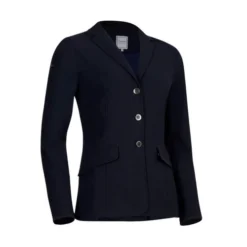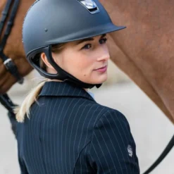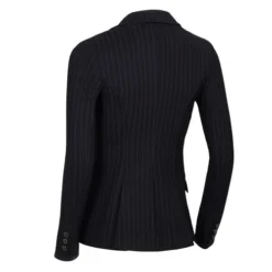The Samshield Alix Jacket is manufactured in an environmentally conscious way to minimize its ecological impact. The fabric is also wrinkle free and machine washable for easy care. The Alix has a feminine profile with double vent in back and functional front flap pockets that secure with a hidden zipper. The Alix Jacket is part of Samshield’s Premium Line of equestrian apparel and has stylish touches throughout. The top of the pockets and the edge of the cuffs are trimmed in microsuede to match the fabric. The buttons are custom Samshield signature buttons in a subtle flat metal finish. The cuffs have matching smaller buttons as an accent. Riders will appreciate the lovely drape, the figure flattery, and all the practical elements of the Alix Jacket while they are under the judge’s watchful eye. Samshield Alix Jacket is available in Black Tennis Stripe, Black, and Navy.
