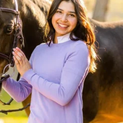 The Essential Crewneck Sweater from TKEQ has a classic fit, a soft fine knit, and wear-anywhere style. And that Charm color! The lovely lilac shade is so fresh and flattering. Women’s Essential Crewneck Sweater from TKEQ is part of their Violet Edit, a limited edition collection of riding apparel in violet and coordinating hues.