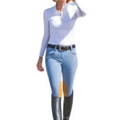 These ladies breeches for the hunter ring have a 2″ waistband that fits your favorite show belts and attractive traditional Clarino knee patches that grip nicely. The Solo Hunter Pro also has a new integrated cuff with sheer cool mesh material for sleek, ventilated comfort under your riding boots. Tredstep’s hunter breeches have a modified low rise, front zip with secure double hooks, and front slash pockets. The euroseat styling is simple and unadorned, with no back pockets or embellishments. Simply perfect, the Tredstep Solo Hunter Pro Breeches for women are a polished, professional look for any level of competition.