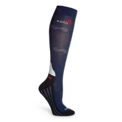 Tredstep Solo Pro Socks for riding are knee high socks with outstanding features for equestrian performance. These tall boot socks are thin enough to pair with you close fitting show boots, but are cushioned in the foot area for comfortable soles and ankle protection. Solo Pro Socks from Tredstep Ireland are made with anti friction yarns that reduce the chance of skin irritations like rubs and blisters.