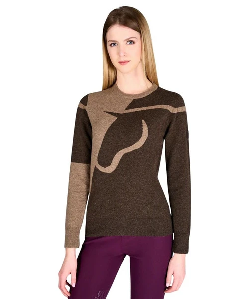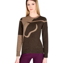 San Cassiano Crew Neck Sweater from Vestrum is a soft blend knit sweater with classy Vestrum logo and versatile colors for riding wardrobes. The horse head logo is created with a two tone color block graphic on the front and sleeves. The San Cassiano Crew Neck Sweater has a slightly fuzzy texture that adds to the cozy feel.