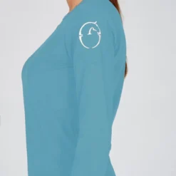 Vestrum Zocca Training Top has a feminine, flattering cut with nice shaping and details. The crew neck long sleeve shirt is silky, soft and comes in two solid colors. The Dusty Blue shirt has a silver Vestrum embroidery logo on the sleeve while the Khaki shirt has a gold Vestrum logo. Functional and stylish, The Zocca Training Top has all the features needed for rider comfort plus the signature quality and flair that make Vestrum equestrian apparel special.