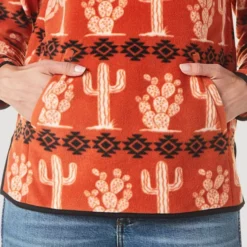 Wrangler Cactus Quarter Zip Fleece Pullover is super lightweight, warm, and ideal for layering. The bold styling includes a cactus print in white with Southwestern geo print in black. The Cinnabar color on polar fleece is fresh and fun for multi-season wear.
