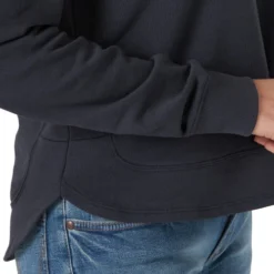 You’ll love the flattering fit of the Wrangler Curved Hem Hoodie and its cozy cotton comfort. The soft terry sweatshirt is a nice lightweight layer and has that easy fit and feel for instant favorite status. There are panels at the sides that give it a little extra fullness while still looking simple and feminine. It’s perfect for riding, relaxing, evenings at the beach, or morning walks with friends.