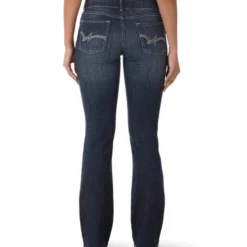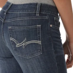 Women’s Wrangler Essential Mid Rise Bootcut Jean is a great choice for everyday riding and comfortable fashion. The denim fabric is a soft, stretchy blend that moves with you and keeps its shape nicely. The mid rise fit is below the waist with plenty of coverage thanks to the contoured waistband. Essential Mid Rise Bootcut Jeans from Wrangler are classic Western style women’s jeans with five pockets and signature Wrangler embroidery.