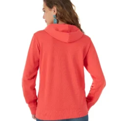 Women’s Wrangler Geo Hoodie in dark pink is a soft fleece sweatshirt with fun futuristic graphic print and embroidery. The bright dark pink color with silver metallic Wrangler print and thickly embroidered silver zig-zag make a big impact. Combine that with soft snuggly fleece and a relaxed fit, and you’ve got a winner!