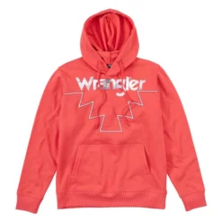 Wrangler Geo Hoodie is a creative interpretation of a classic Western brand and motif. The Southwestern pattern plus iconic Wrangler name in shiny silver against intense pink has a bold and fun energy. Ladies cozy hooded sweater has a kangaroo pocket, softly brushed interior, and a light/medium weight for multi-season enjoyment. Ladies Wrangler Geo Hoodie is a pullover style for quick and easy comfort and warmth.