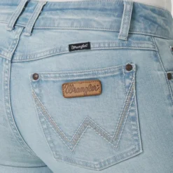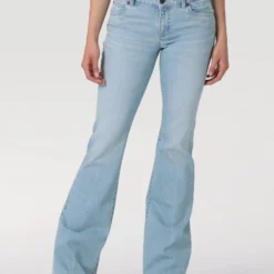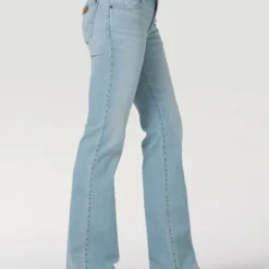 Women’s Wrangler Mae Mid Rise Trouser Jean has 5-pocket styling with a zipper and button closure. The faded wash with crease print on the wide lower leg and the wide hem add to the vintage appeal. Designed with a curvy fit at the thigh and hip, these jeans have nice balance for figure flattery. The Mae Mid Rise Trouser Jean is versatile enough to dress up or down, making it the perfect addition to any wardrobe.